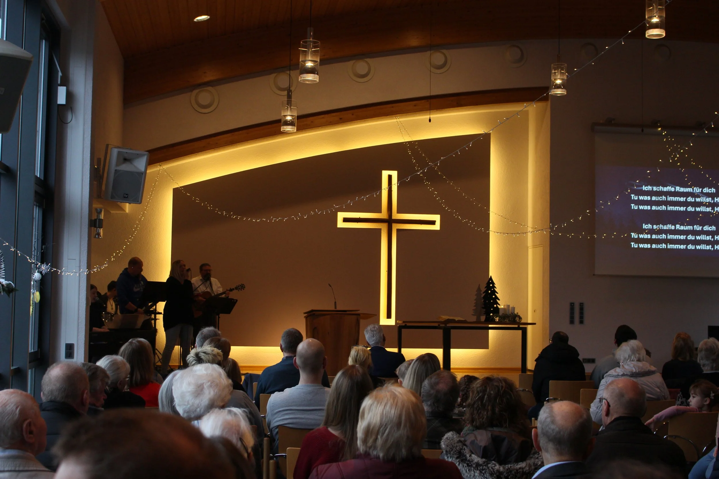 Neu hier? Komm’ doch einfach mal zu unserem Gottesdienst am Sonntag um 9:30 Uhr!